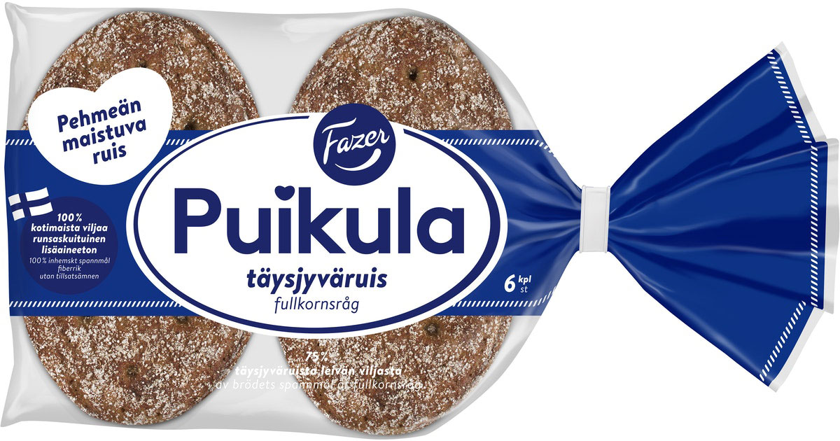 Fazer Puikula Vollkornroggenbrot ist eines der beliebtesten Brote in Finnland mit genau der richtigen Menge Roggen für den finnischen Geschmack. Das Brot wird in Finnland mit 100% inländischem Getreide gebacken. Es ist ballaststoffreich und hat keine Zusätze.