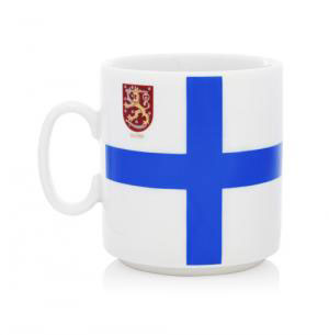 Zeigen Sie Flagge mit diesem Kaffeebecher mit der Flagge Finnlands, dem Wappen des Landes sowie der internationalen Kennung "FIN".