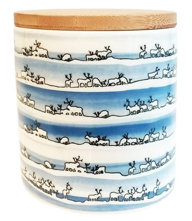 RAPU-ART Porotokka Keramikdose mit Holzdeckel und Rentiermotiven, 0,8 l
