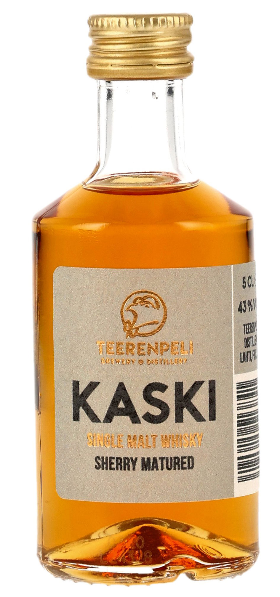 KASKI ist nur in ausgewählten Sherryfässern gereift, daher hat er eine Farbe von geröstetem braunem Zucker. Der Duft hat Noten von Fruchtigkeit und einem leichten Torf. Der Geschmack ist weich, getreideartig und reichhaltig. Der typische würzige Nachgeschmack der Teerenpeli Distillery verbindet sich mit rosinenartigem Fruchtkuchen.