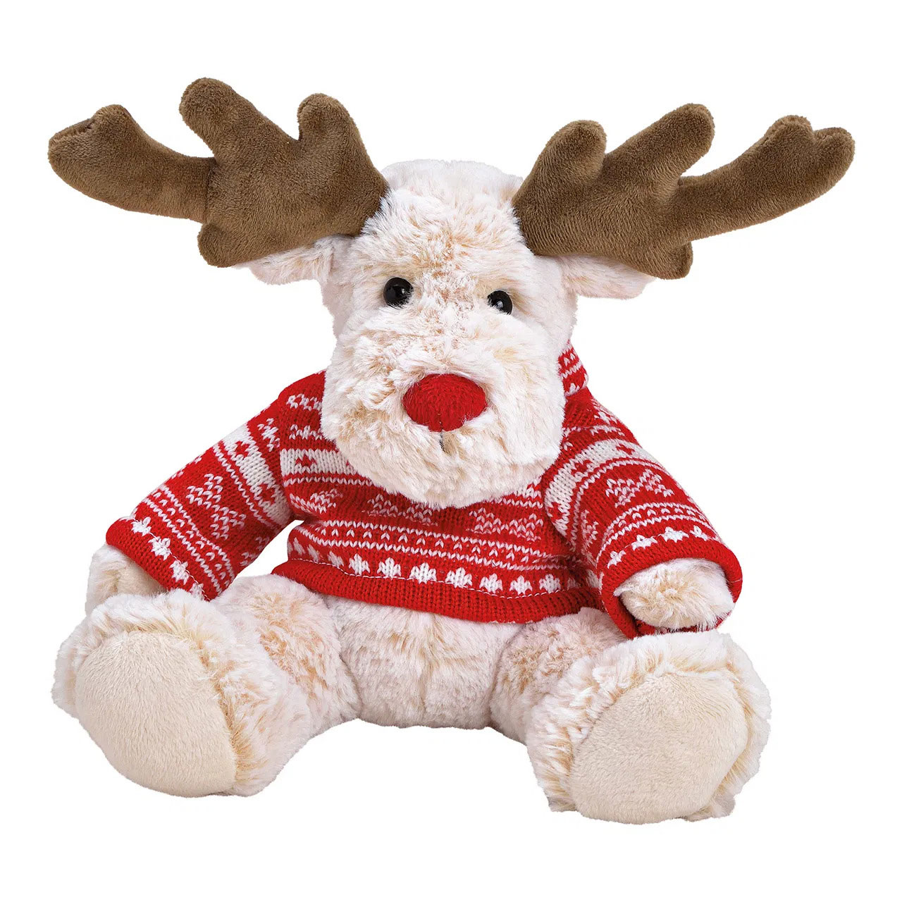 Unseren süßen Elvis, der hübsche Plüschelch mit seinem langen Beinen und Armen muss man einfach lieb haben. Mit seinem rot-weißen Strickpullover ist er zudem ein kleiner Modegeck. Er eignet sich zum Kuschel und schmusen für Kleine und Große Elchfans.