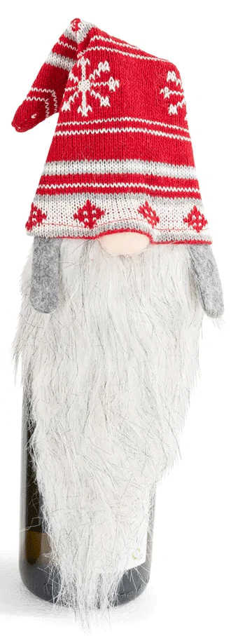 Dieser nette Wichtel mit seinem grauen Bart und seiner roten Strickmütze verziert jede Flasche im handumdrehen und macht sie zu einem liebevollen Geschenk. Einfach mit der Mütze über eine Flasche stülpen.