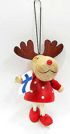 Rentier Suomi-Fan Friida, hängend mit Finnlandflagge