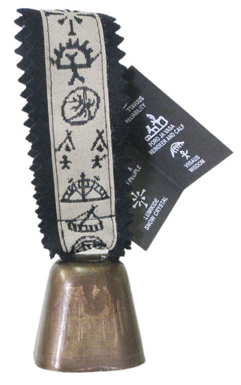 Die traditionellen Samensymbole schmücken das schwarze Band, an dem eine kleine Rentier-Glocke hängt. Sehr schön als Dekoration, aber auch, um Aufmerksamkeit zu erregen, zum Beispiel wenn das Essen fertig ist.