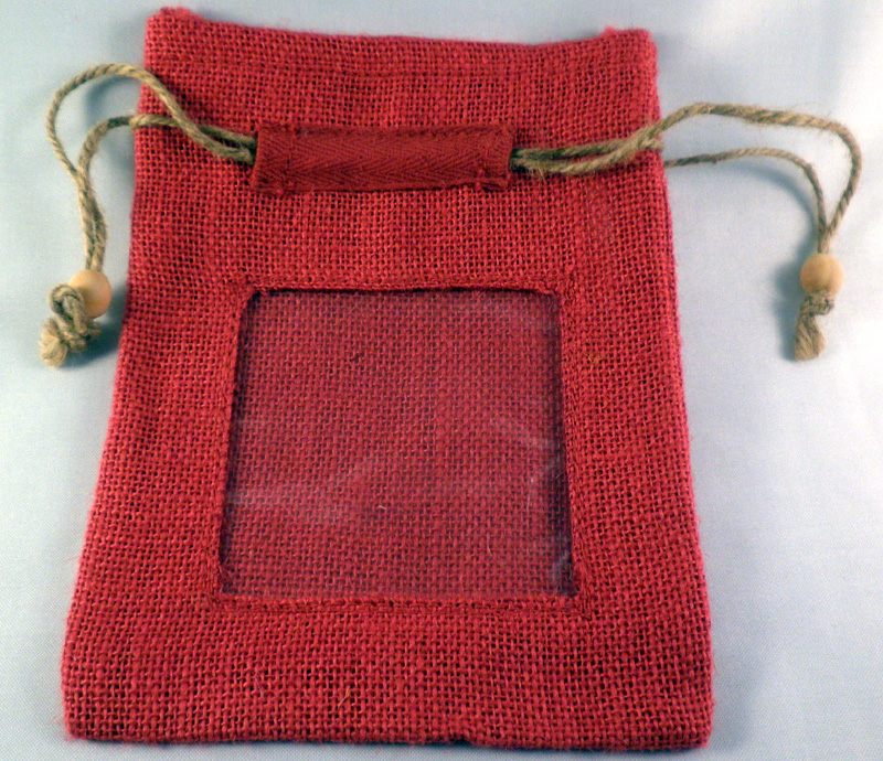 Dieser rote Jutebeutel mit einem Sichtfenster und Verschlusskordel eignet sich ideal als Geschenkverpackung oder zur Aufbewahrung nützlicher Dinge,